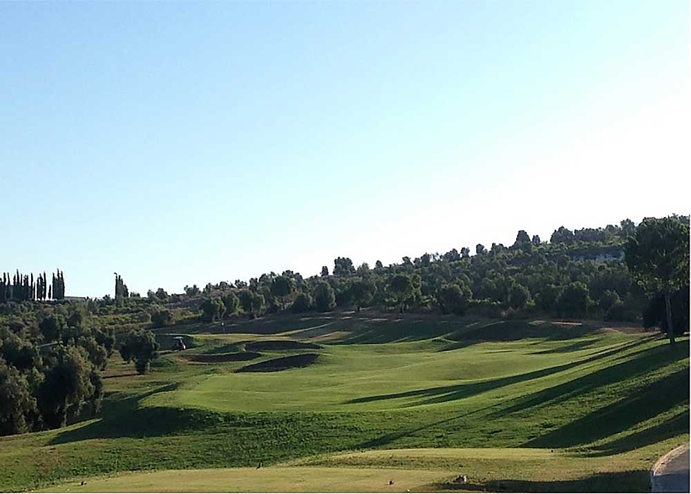 Le parcours se caractérise par ses fairways larges et bien entretenus, bordés d’une végétation méditerranéenne dense composée de pins, d’oliviers et d’arbustes locaux. Cette nature environnante crée des obstacles naturels qui exigent précision et stratégie.
